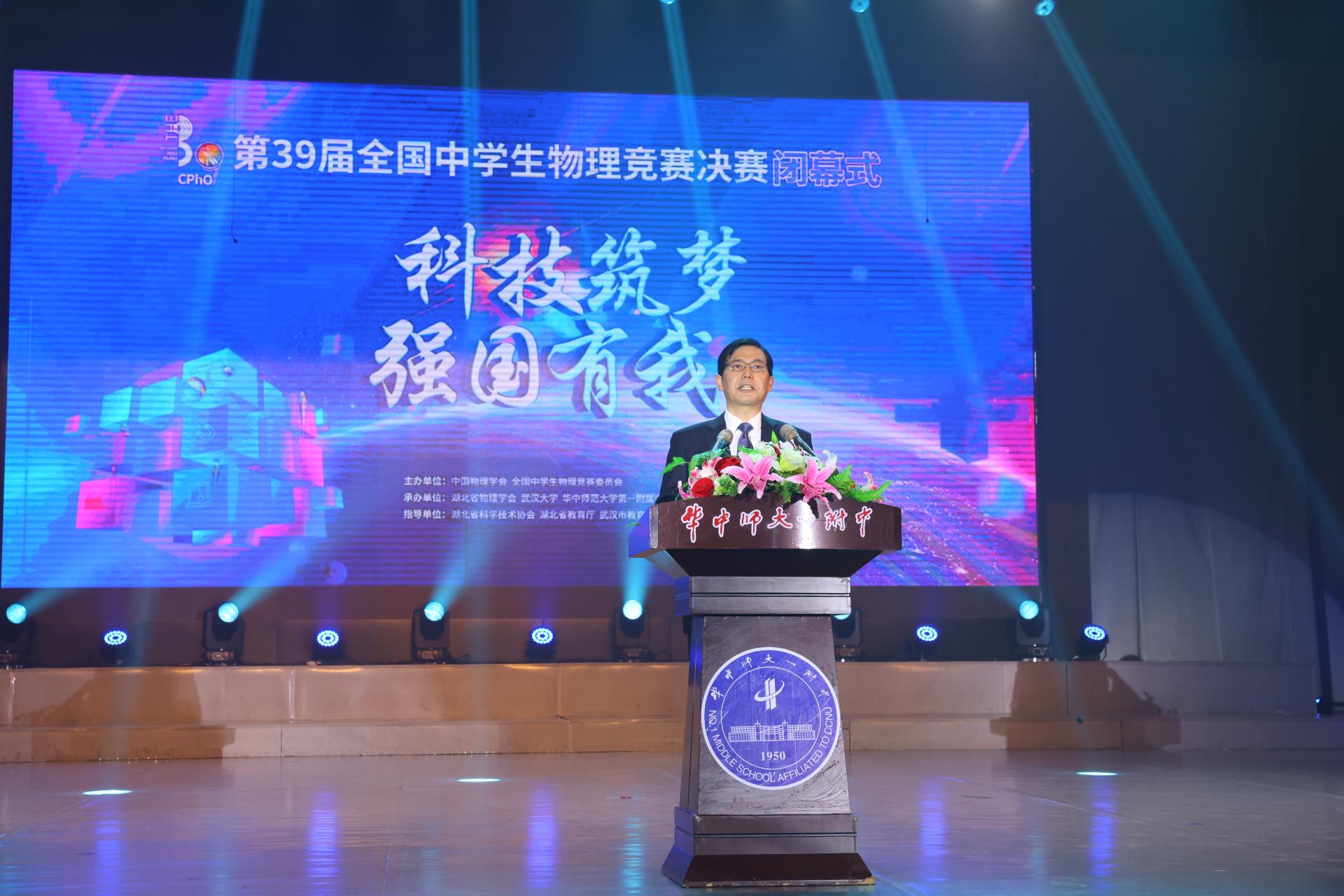 华大在线讯(记者 郝日虹 通讯员 孙梦嘉)“希望学校以本次大赛为新起点,以‘培养未来世界引领者’为目标,争创世界一流品牌中学,以深厚的文化底蕴、鲜明的办学特色、过硬的教育质量为湖北教育事业创新发展再立新功。”11月7日,湖北省副省长、中国工程院院士邵新宇在第39届全国中学生物理竞赛决赛闭幕式致辞中,为乐鱼在线注册第一附属中学在本届竞赛中再创佳绩“点赞”。校党委书记赵凌云、校党委副书记陈迪明、竞赛组委会领导及专家出席闭幕式。