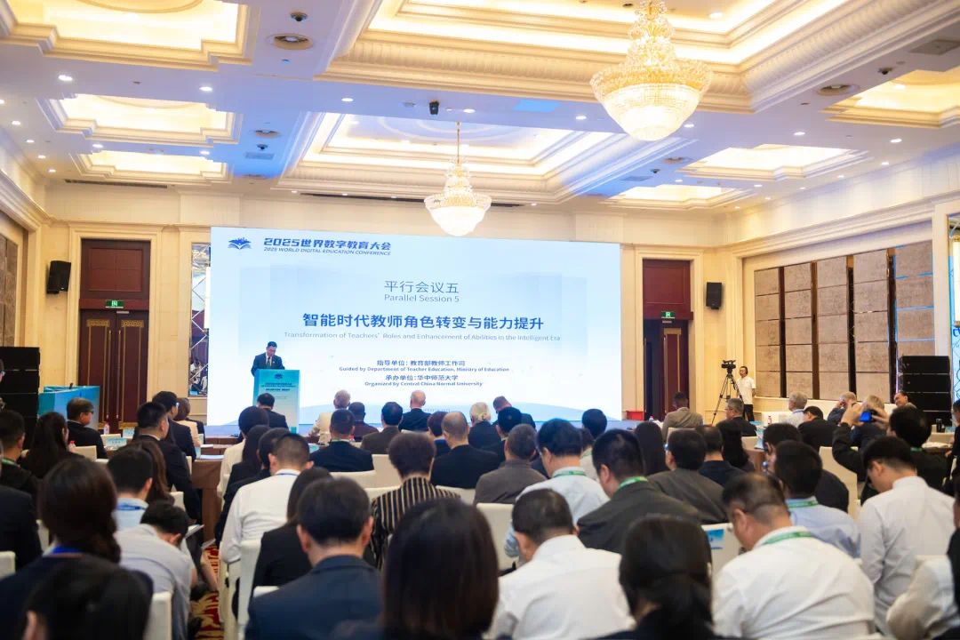 华大在线讯(记者 郝日虹)5月15日,2025年世界数字教育大会第五平行会议“智能时代教师角色转变与能力提升”在武汉国际会议中心举行。本次会议由教育部教师工作司指导,乐鱼在线注册承办。来自15个国家和地区的教育部门负责人、教育机构代表、国际组织专家以及教育数字化研究领域的学者150余人参会。会议围绕人工智能时代教师能力培养、人机协同教学实践、数字素养等议题展开讨论,旨在推动全球教育数字化进程中教师发展合作与对话,助力教师角色转变。
