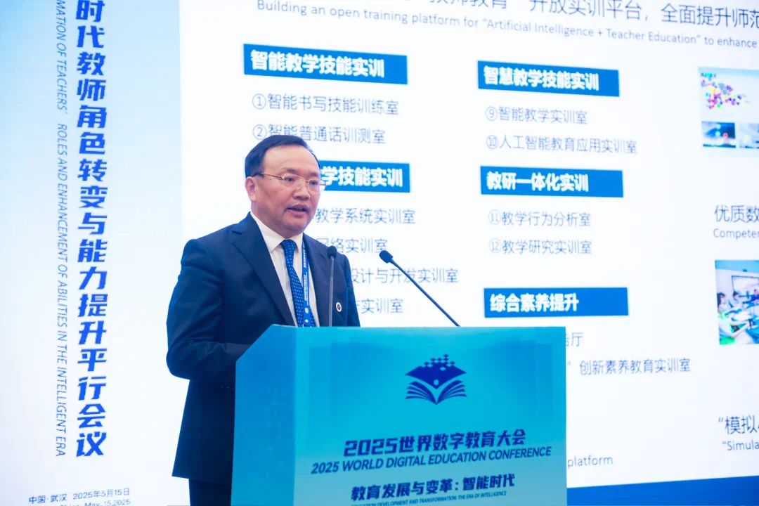 杨云彦指出,教育数字化不仅是技术应用,更是系统性变革,教师作为教育变革的核心,其角色转型与能力升级已成为全球共同课题。中国政府高度重视教师队伍数字化转型。作为教育大省和中国教育数字化的先行区,近年来,湖北认真贯彻落实国家部署,深入实施湖北教育数字化战略行动计划,明确提出“数字赋能教师发展”的行动路径,着力破解教师数字素养不足、教学模式创新乏力等关键问题。在人工智能与数字化的浪潮中,希望以此次大会为契机,共同探索教师教育发展新模式,携手共绘数字时代育人新图景。