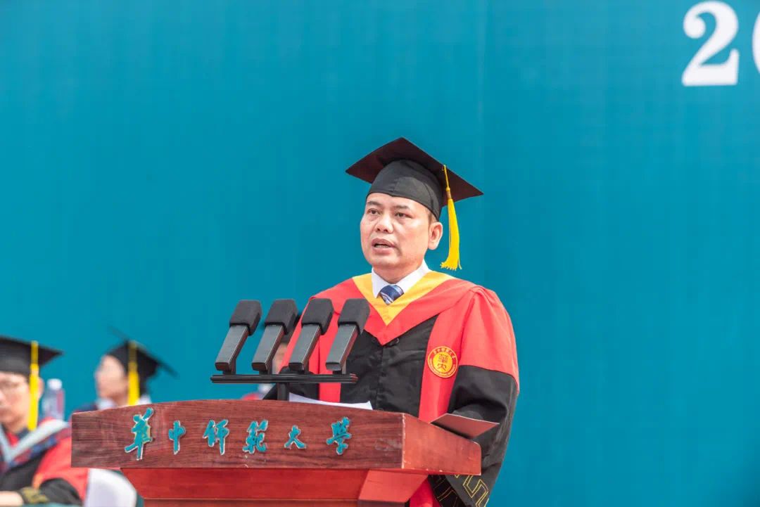 彭双阶表示,在当今充满变化的时代,同学们需要的不仅是单一技能,更是一种综合的韧性,能够在变化中保持清醒,在挑战中抓住机遇。他向同学们提出四点希望:一是要涵养自强不息、历久弥坚的民族韧性,赓续华师百年文脉的师者风骨,磨砺为党育人、为国育才的坚韧品格;二是要锻造谋定后动、久久为功的战略韧性,把根须扎进时代的深层土壤,在时代浪潮中奋楫争先;三是要淬炼锐意进取、敢为人先的创新韧性,以“无问西东”的勇气蹚出科技自主之路;四是要培育任尔东西、应变求进的奋斗韧性,主动拥抱时代变化,把握人生“动态算法”,持续涵养新本领。彭双阶勉励全体毕业生无需畏惧人生风雨,以强韧之姿拥抱未来,绘就时代蓝图。
